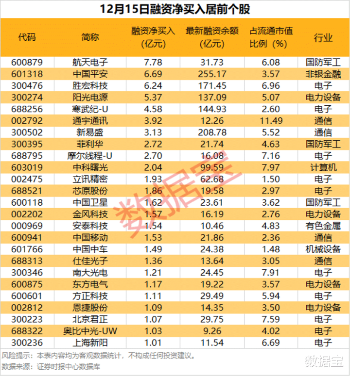 具体到个股,12月15日获融资净买入千万元以上的有471股,其中25股融资净买入额均超1亿元。